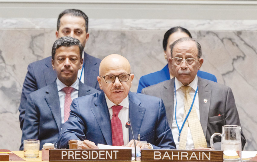 وقال وزير الخارجية إن عضوية مملكة البحرين غير الدائمة في مجلس الأمن، ورئاستها لدورة شهر أبريل الجاري، وضعتنا أمام تحد بالغ الدقة، وهو أن نحمي مصالح دولنا المتضررة والعالم أجمع، وأن نحافظ في الوقت ذاته على وحدة مجلس الأمن، لكي يظل المجلس متحدا في مواقفه وقراراته، ولذلك حرصنا، وبعد مفاوضات متواصلة ومناقشات مستفيضة، على أن يكون مشروع القرار متوازنا وقابلا للتنفيذ ويحقق الأهداف المنشودة، ودعا جميع أعضاء المجلس إلى دعم مشروع القرار، فمصداقية المجلس، وأمن المنطقة واستقرارها، ونمو الاقتصاد العالمي، والحفاظ على الأمن الغذائي، والتقدم التكنولوجي، جميعها تعتمد على قرار مجلس الأمن.