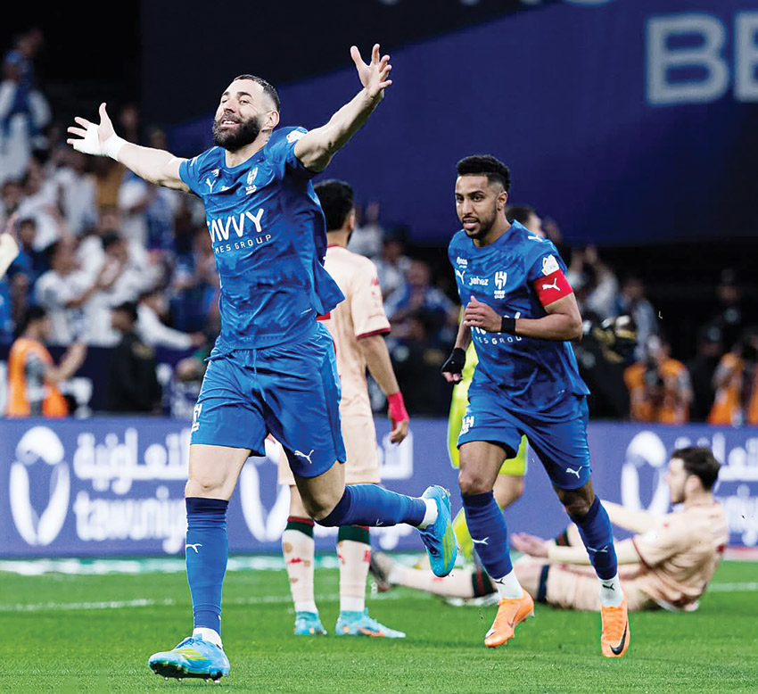 الرياض (السعودية) - (أ ف ب): قاد الفرنسي كريم بنزيمة فريقه الهلال إلى الانفراد بالمركز الثاني في الدوري السعودي لكرة القدم، بتسجيله ثلاثية «هاتريك» في الانتصار 6-0 على الخلود، أمس الأربعاء على ملعب المملكة أرينا في الرياض في مباراة مقدّمة من المرحلة التاسعة والعشرين.