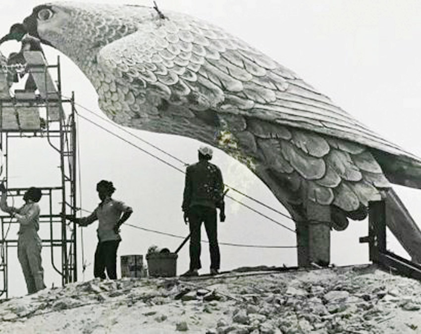 يذكر أن مجسم الصقر كان من تصميم المصمم محمد جناحي حيث تم وضعه في تقاطع جسر عراد في المحرق عام 1983 وأنه اثناء وضعه بواسطة الرافعة انكسر راسه ومنقاره وتم إصلاحه في نفس المكان.