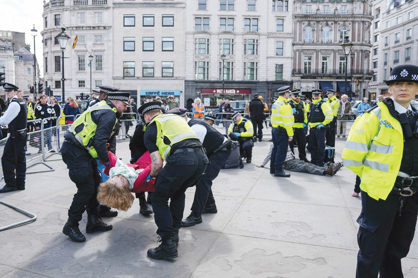 لندن - (أ ف ب): أعلنت شرطة لندن أمس السبت توقيف أكثر من 500 متظاهر مؤيد للفلسطينيين في تظاهرة لدعم منظمة «بالستاين أكشن» (التحرك من أجل فلسطين) المحظورة من قبل السلطات في المملكة المتحدة. واقتاد عناصر الأمن نشطاء وسط هتافات وتصفيق من المتظاهرين الآخرين الذين شاركوا باعتصام في ميدان ترافالغار. ورفع المتظاهرون لافتات تدعم المنظمة، ما جعلهم عرضة للتوقيف.