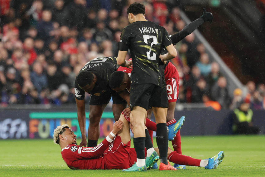 ليفربول - (أ ف ب): أكّد المدرب الهولندي لليفربول الإنكليزي أرنه سلوت، أن إصابة المهاجم أوغو إيكيتيكيه الذي خرج على نقالة خلال الشوط الأول من مواجهة باريس سان جرمان الفرنسي ضمن إياب ربع نهائي دوري أبطال أوروبا لكرة القدم، «خطيرة إلى حدّ ما»، مضيفا أن الدولي الفرنسي «تعرّض لإصابة مؤلمة جدا»، من دون تحديد طبيعتها.