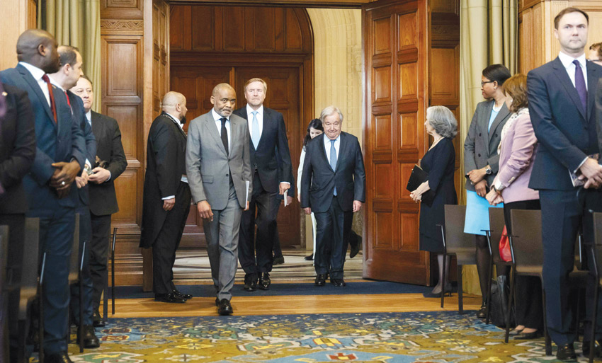 لاهاي - (أ ف ب): رأى الأمين العام للأمم المتحدة أنطونيو غوتيريش أمس الجمعة أن «احترام القانون الدولي بات مهما أكثر من أي وقت مضى»، مؤكدا أن «انتهاكات (هذا القانون) تُرتكب أمام أعيننا». وقال غوتيريش في كلمة أمام محكمة العدل الدولية في الذكرى الثمانين لتأسيسها، «اليوم، تُرتكب انتهاكات القانون الدولي مباشرة أمام أعيننا». وأضاف «إن احترام القانون الدولي بات مهما أكثر من أي وقت مضى لأن النظام الدولي يتعرض لهذه الضغوط، خصوصا في حقبة تشهد تغيّرا لموازين القوى». وتابع «يجب أن تسود على الدوام قوة القانون وليس قانون القوة».