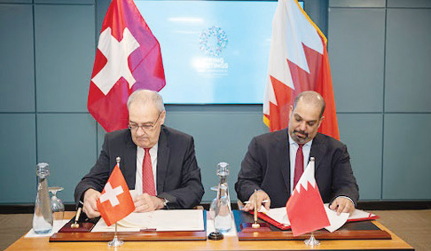 وتم خلال اللقاء التوقيع على اتفاقية بين حكومة مملكة البحرين والمجلس الفيدرالي السويسري لتشجيع وتبادل حماية الاستثمارات، وقد وقع عن جانب حكومة مملكة البحرين الشيخ سلمان بن خليفة آل خليفة وزير المالية والاقتصاد الوطني، وعن جانب المجلس الفيدرالي السويسري فخامة الرئيس غي بارميلان رئيس الاتحاد السويسري.