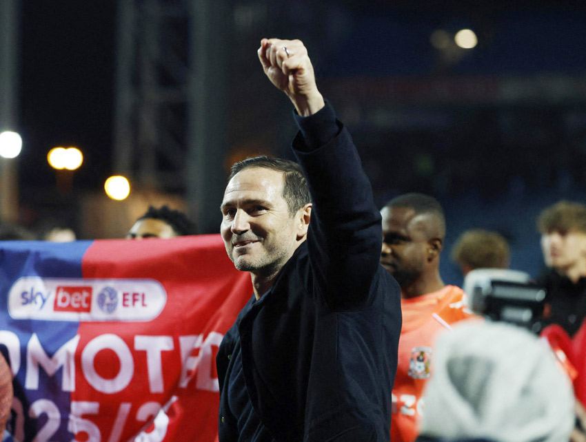 لندن - (أ ف ب): قاد المدرب ولاعب الوسط السابق فرانك لامبارد نادي كوفنتري للتأهل إلى الدوري الإنجليزي الممتاز في كرة القدم للمرة الأولى منذ 25 عاما، ذلك بعد أن ضمن الفريق صعوده الجمعة بتعادله أمام بلاكبيرن 1-1 في المستوى الثاني «تشامبيونشيب».