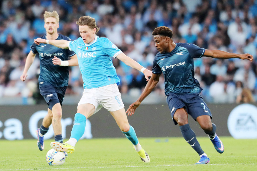 وأهدر لاتسيو ركلة جزاء بعدما استغل لاعبوه خطأ دفاعيا عندما وجد الهولندي تيجاني نوسلين نفسه في مواجهة مباشرة مع الحارس الصربي فانيا ميلينكوفيتش-سافيتش، قبل أن يتعرض للإعاقة من الخلف من قبل السلوفاكي ستانيسلاف لوبوتكا، فنفذها القائد زاكاني ماتيا وتصدى لها ببراعة حارس نابولي (31).