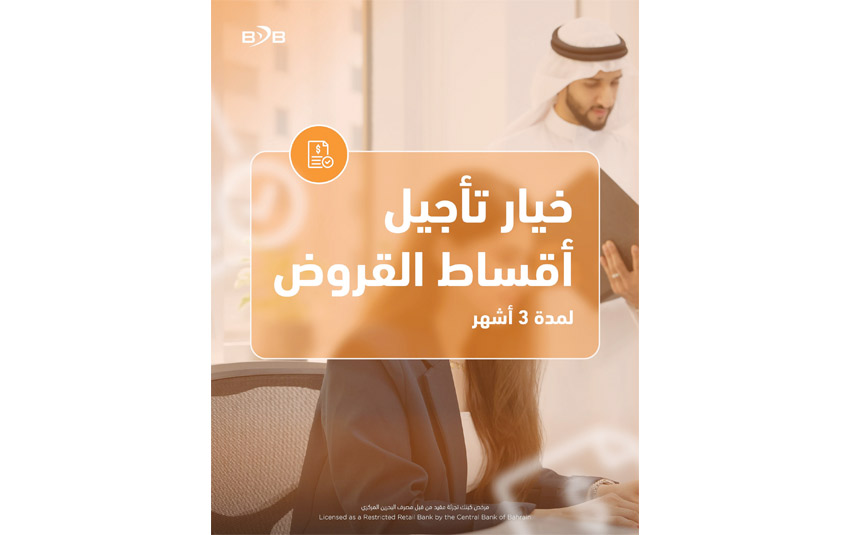 وفي ظل مساعي مملكة البحرين للنهوض بالاقتصاد الوطني، يحرص بنك البحرين للتنمية على مواكبة تلك الجهود عن طريق توفير خيار تأجيل سداد القروض مدة تصل إلى ثلاثة أشهر. وبإمكان الراغبين بالاستفادة من هذه المبادرة، زيارة أيّ من فروع البنك، أو التواصل مع مديري العلاقات لتقديم طلباتهم.