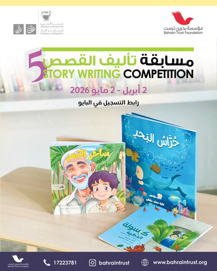 أعلنت مؤسسة بحرين ترست بالتعاون مع هيئة البحرين للثقافة والآثار فتح باب التسجيل في الدورة الخامسة لمسابقة تأليف القصص للأطفال والناشئة لعام 2026، حيث تأتي هذه النسخة لتعزيز دور المؤسسة كمنظمة خيرية غير ربحية تسعى لتطوير جودة الحياة وإحداث فرق إيجابي في المجتمع من خلال الإيمان بأن التعليم والتدريب هما الركيزة الأساسية لتمكين الأفراد وتنمية مهاراتهم.