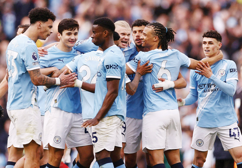 لندن - (أ ف ب): شدّد مانشستر سيتي الخناق على أرسنال متصدر الدوري الإنكليزي لكرة القدم، بعدما أسقطه 2-1 بهدفي الفرنسي ريان شرقي والنروجي إرلينغ هالاند، أمس الأحد ضمن المرحلة الثالثة والثلاثين، ليقلص الفارق معه إلى ثلاث نقاط، علما أن لفريق المدرب الإسباني بيب غوارديولا مباراة مؤجلة.