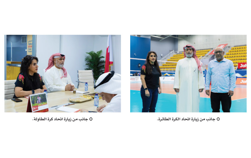 وخلال زيارته إلى الاتحاد البحريني لكرة الطاولة، التقى البلوشي بالشيخة حياة بنت عبدالعزيز آل خليفة رئيسة مجلس الإدارة ونائب الرئيس علي المادح وأمين السر سيد جعفر هادي واطلع على أبرز البرامج والخطط التي ينفذها الاتحاد، واستمع إلى شرح مفصل حول التحديات التي يواجهها واحتياجاته الفنية والإدارية خلال المرحلة الحالية مشيدا بالجهود المبذولة من قبل مجلس إدارة الاتحاد في مواصلة العمل وتطوير اللعبة، مؤكداً أهمية تكثيف الجهود للحفاظ على المكتسبات وتحقيق المزيد من الإنجازات.