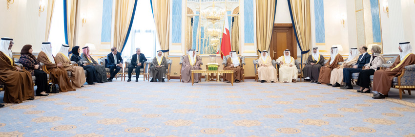 جاء ذلك لدى لقاء سموه، في قصر القضيبية أمس، بحضور الشيخ خالد بن عبدالله آل خليفة نائب رئيس مجلس الوزراء، والفريق أول الشيخ راشد بن عبدالله آل خليفة وزير الداخلية، وسمو الشيخ عيسى بن سلمان بن حمد آل خليفة وزير ديوان رئيس مجلس الوزراء، والشيخ سلمان بن خليفة آل خليفة وزير المالية والاقتصاد الوطني، وعدد من كبار المسؤولين، أحمد بن سلمان المسلم رئيس مجلس النواب، وعلي بن صالح الصالح رئيس مجلس الشورى، ونائبي الرئيسين، وأعضاء هيئة المكتب بالمجلسين، وعددا من أعضاء مجلسي الشورى والنواب، حيث نوّه سموه بجهود أعضاء السلطة التشريعية ومساعيهم الطيبة التي تسهم في تحقيق المزيد من المنجزات التنموية التي تعود بالنماء والازدهار على الوطن وتلبي تطلعات أبنائه، مؤكدًا سموه الدور البارز للتعاون البنّاء بين السلطتين التنفيذية والتشريعية، والحرص على تعزيز هذا التعاون بما يسهم في دعم تنفيذ وتبني الخطط والمبادرات والبرامج التي من شأنها تحقيق الأهداف التنموية المنشودة للمملكة.