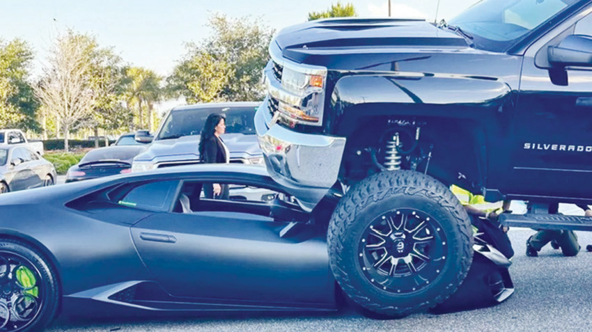 في حادث غريب، دهست سيدة تقود شاحنة تزن ثلاثة أطنان سيارة لامبورغيني قيمتها 250 ألف جنيه إسترليني (حوالي 340 ألف دولار) في موقف سيارات بفلوريدا.