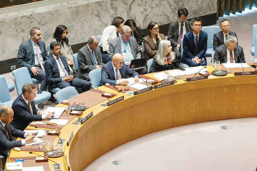 في إطار رئاسة مملكة البحرين مجلس الأمن الدولي في دورة شهر أبريل الحالي ترأس الدكتور عبداللطيف بن راشد الزياني وزير الخارجية جلسة المناقشة المفتوحة رفيعة المستوى بمجلس الأمن حول بند الحالة في الشرق الأوسط، بما في ذلك القضية الفلسطينية، التي عقدت بحضور السيد خالد خياري الأمين العام المساعد في إدارة الشؤون السياسية وبناء السلام، والسيد إسبن بارت آيدا وزير الشؤون الخارجية وممثل لجنة الاتصال المتخصصة، والسيد توني بلير عضو المجلس التنفيذي بمجلس السلام.