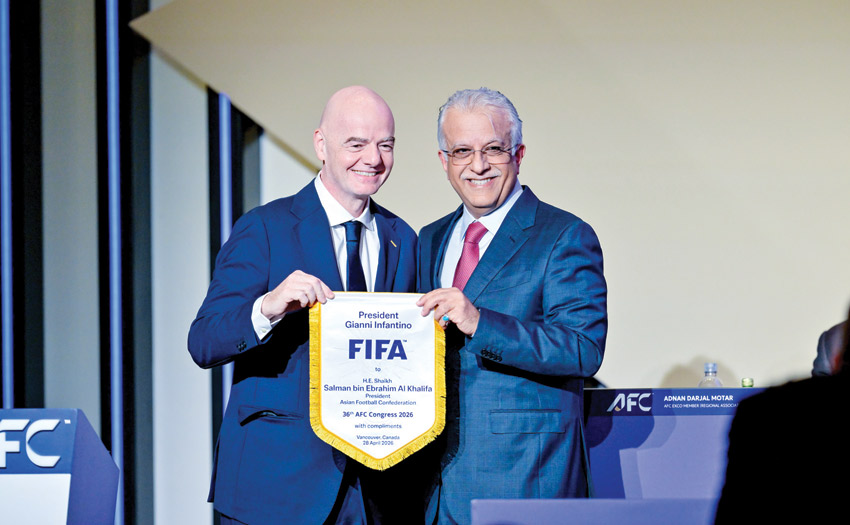 ترأس الشيخ سلمان بن إبراهيم آل خليفة رئيس الاتحاد الآسيوي لكرة القدم النائب الأول لرئيس الاتحاد الدولي لكرة القدم اجتماع الجمعية العمومية السادسة والثلاثين في الاتحاد الآسيوي لكرة القدم 2026 والذي عقد يوم الثلاثاء في مدينة فانكوفر الكندية بحضور السيد جياني إنفانتينو رئيس الاتحاد الدولي لكرة القدم ورؤساء الاتحادات القارية ورؤساء وممثلي الاتحادات الوطنية الآسيوية والمسؤولين في الاتحاد الآسيوي لكرة القدم.